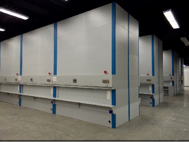 數(shù)控升降庫(kù)是以托盤(pán)為存儲(chǔ)單元的自動(dòng)化倉(cāng)儲(chǔ)設(shè)備。其通過(guò)提取器的升降運(yùn)動(dòng),將存放貨物的托盤(pán)取出到操作者的面前或者送到庫(kù)內(nèi)合適的貨位。在送貨物的過(guò)程中,通過(guò)入口處自動(dòng)測(cè)高裝置,檢測(cè)所存物品的高度,以便快捷的將物料存放于庫(kù)內(nèi)最佳貨位,取送物品無(wú)需人力搬運(yùn),高速備貨,真正實(shí)現(xiàn)的自動(dòng)化存取過(guò)程。自動(dòng)、合理的安排庫(kù)內(nèi)有效存儲(chǔ)空間。管理監(jiān)控系統(tǒng)采用網(wǎng)絡(luò)結(jié)構(gòu),可與ERP連接。與數(shù)控回轉(zhuǎn)庫(kù)相比,數(shù)控升降庫(kù)更適合存放尺寸差異較大和形狀不規(guī)則的物品。