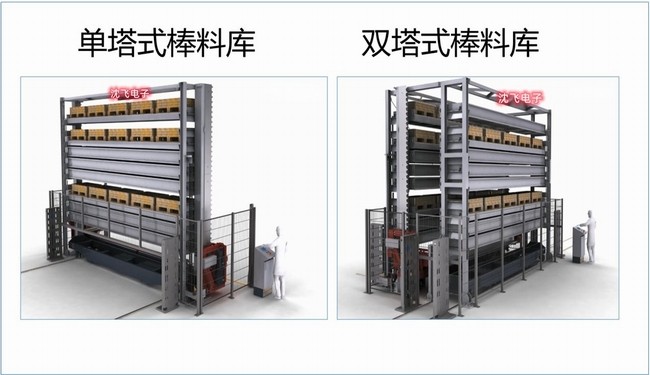 塔式棒料庫分為單塔式棒料庫和雙塔式棒料庫,由多層料架、自動上下料裝置及控制系統(tǒng)組成。由主機控制,智能選取各層的原料,為生產(chǎn)過程提供優(yōu)質(zhì)和自動化的管理輸送。塔式棒料庫具備自動上料、下料雙重功能?蚣芙Y(jié)構(gòu)緊湊穩(wěn)定,具備定位準確,運行快速靈活等特點。