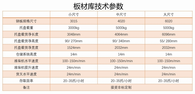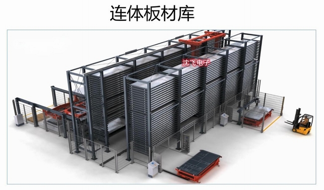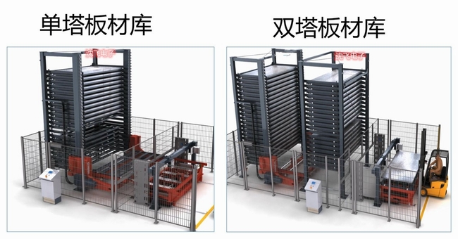 塔式板材庫分為單塔板材庫、雙塔板材庫、連體板材庫,由多層料架、自動上下料裝置及控制系統(tǒng)組成。由主機控制,智能選取各層的原料,為生產(chǎn)過程提供優(yōu)質(zhì)和自動化的管理輸送。塔式板材庫具備自動上料、下料雙重功能?蚣芙Y(jié)構(gòu)緊湊穩(wěn)定,具備定位準(zhǔn)確,運行快速靈活等特點。