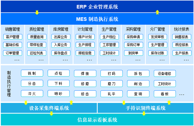 開發(fā)MES制造執(zhí)行系統(tǒng),連接企業(yè)ERP管理系統(tǒng)和生產(chǎn)控制層,提供實(shí)時(shí)生產(chǎn)過程管理;趯(duì)進(jìn)行生產(chǎn)過程產(chǎn)生數(shù)據(jù)和上下游信息的整合,以標(biāo)準(zhǔn)化的生產(chǎn)管理流程來(lái)運(yùn)轉(zhuǎn),由生產(chǎn)訂單驅(qū)動(dòng),通過簡(jiǎn)潔明確的操作,改善企業(yè)生產(chǎn)過程自動(dòng)化控制、工藝管理、質(zhì)量管理和部門協(xié)作等管理難題。